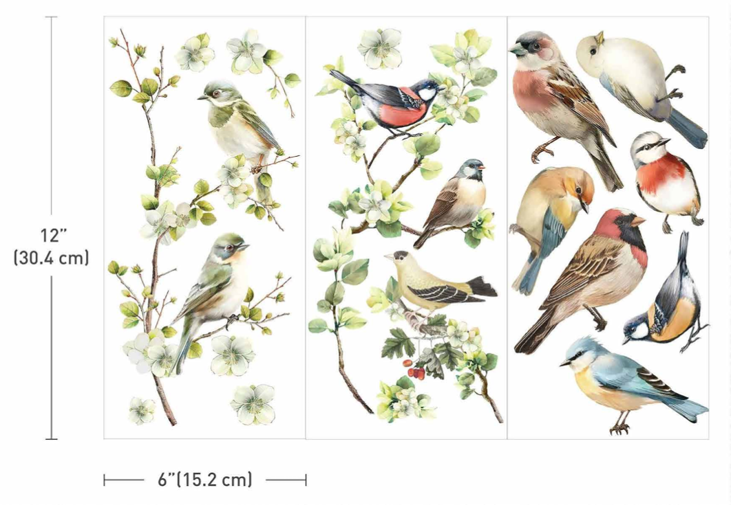 Imagine a charming green dresser with tiny birds and blossoms scattered gracefully, or a set of nesting tables transformed into a garden-inspired masterpiece. With its soft colors and natural details, this transfer adds a touch of serenity to any space. Includes three 6”x12 unique sheets.